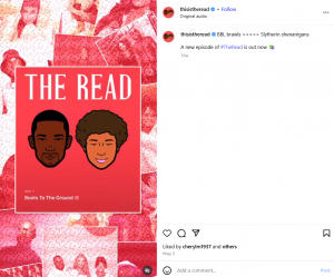 Brutally honest comedians with chemistry, Kid Fury and Crissle West cover the latest pop culture news in their podcast The Read. Each week they deliver witty commentary on topics ranging from Labubus to Cowboy Carter to cancel culture and the latest thrillers like Sinners. Beyond the laughs, they also spotlight wider socio-cultural issues, making the show both entertaining and culturally significant. It has become a cultural staple with a dedicated fanbase for pop-culture lovers everywhere.